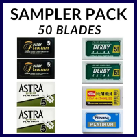 * 4 TOP GLOBAL BRANDS – Experience the best from Feather, Astra, Personna, and Derby. This sampler lets you test four world-renowned blade brands in one convenient pack.