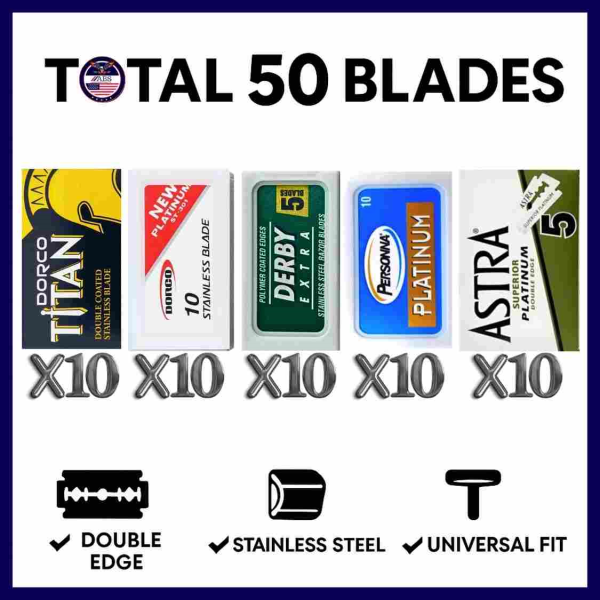 American Beauty Supply Personna Dorco Astra and Derby Double Edge Razors 50 pcs